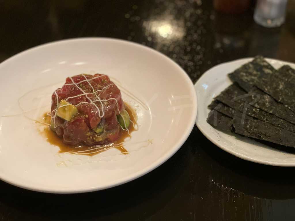 遅い時間に行くと品切れになることもある人気メニュー。海苔で包んで食べるスタイルで、まぐろ×アボカド×海苔の相性が想像以上に抜群。クセになる味でお酒がすすみます。