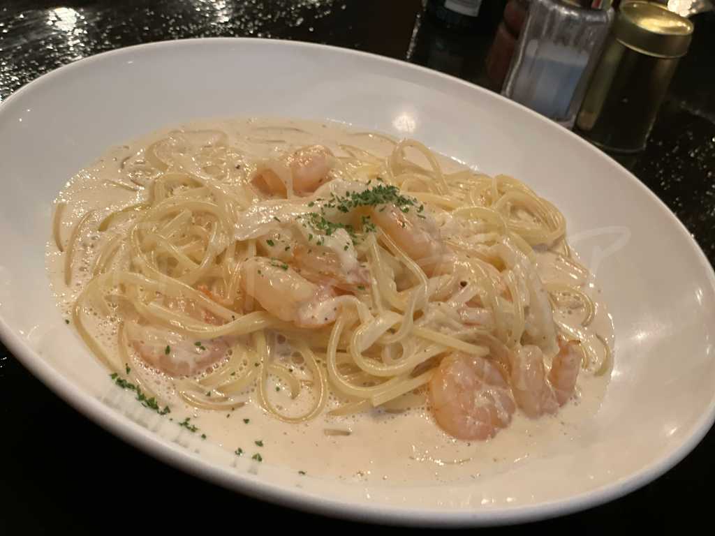 - 小エビのクリームスパゲッティ(〆に強い)