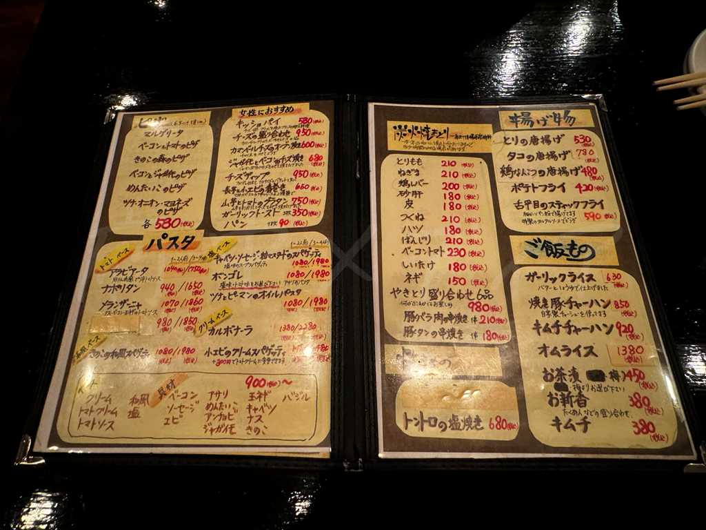 前菜からパスタ・ピザ・揚げ物・ご飯ものまでメニュー数が多く、「今日は何食べよう…」と迷うのも楽しいお店。