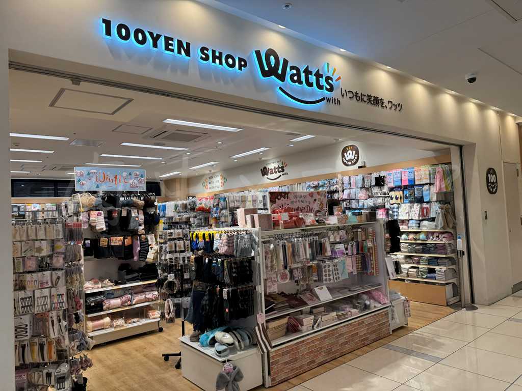 府中駅直結、ル・シーニュ2階にあるワッツ。店舗はコンパクトですが、生活雑貨を中心に、ほかで売っていなかったデザインのアイテムが揃うおしゃれな100円ショップです。改札と同じ2階にあるため、フロア移動せず立ち寄れます。
