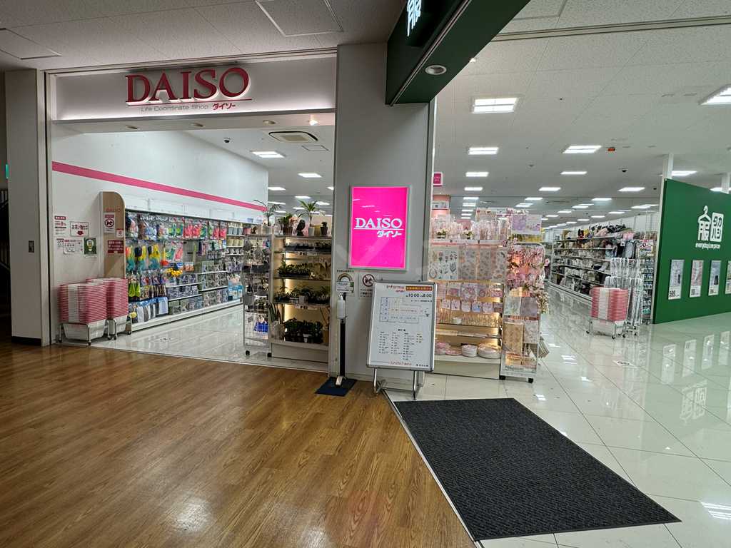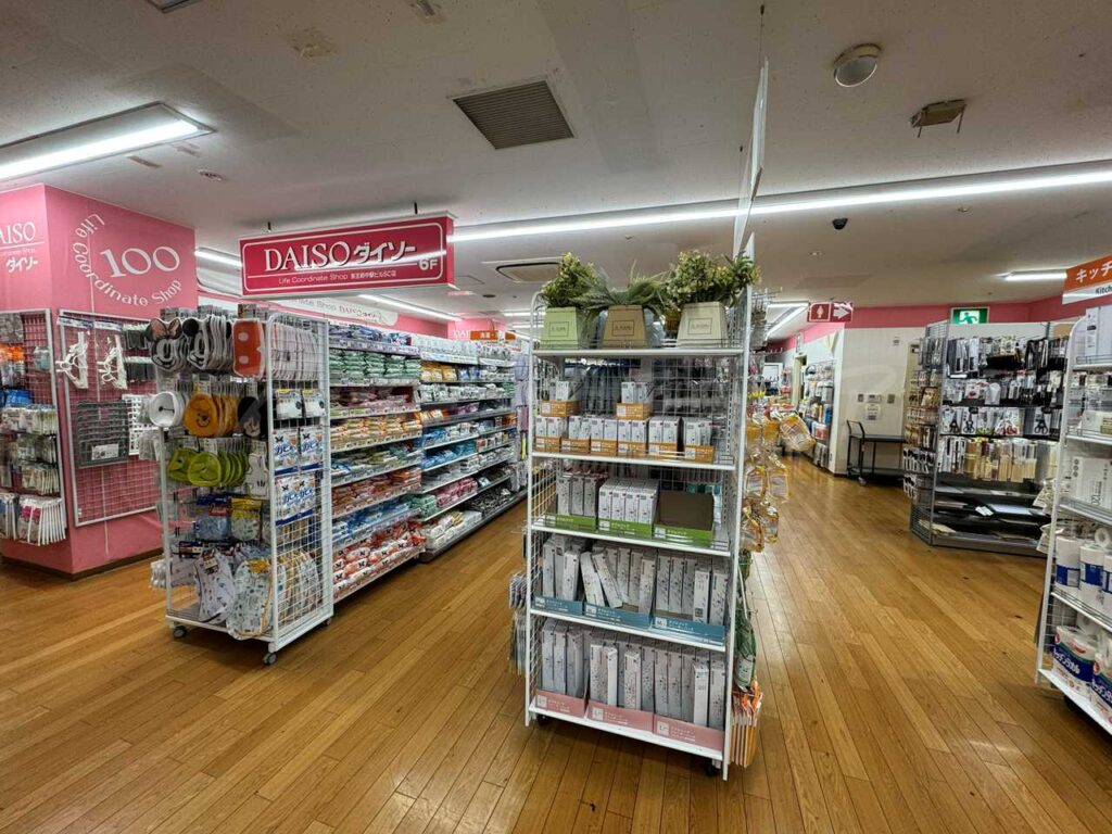 分倍河原駅から徒歩5分、MINANO分倍河原2階にあるダイソー。府中市内のダイソー大型店はこちらとミッテン府中店の2店舗のみで、季節商品から収納・文具まで品揃えが充実しています。駅近の商業施設内にあり、ほかの用事とあわせて立ち寄りやすいのも魅力です。なお、MINANO館内でのお買い物1回でサービス対象となり(金額条件はありません)、同施設内のブックオフでは買取査定を出すだけで駐車料金が2時間無料になります。
