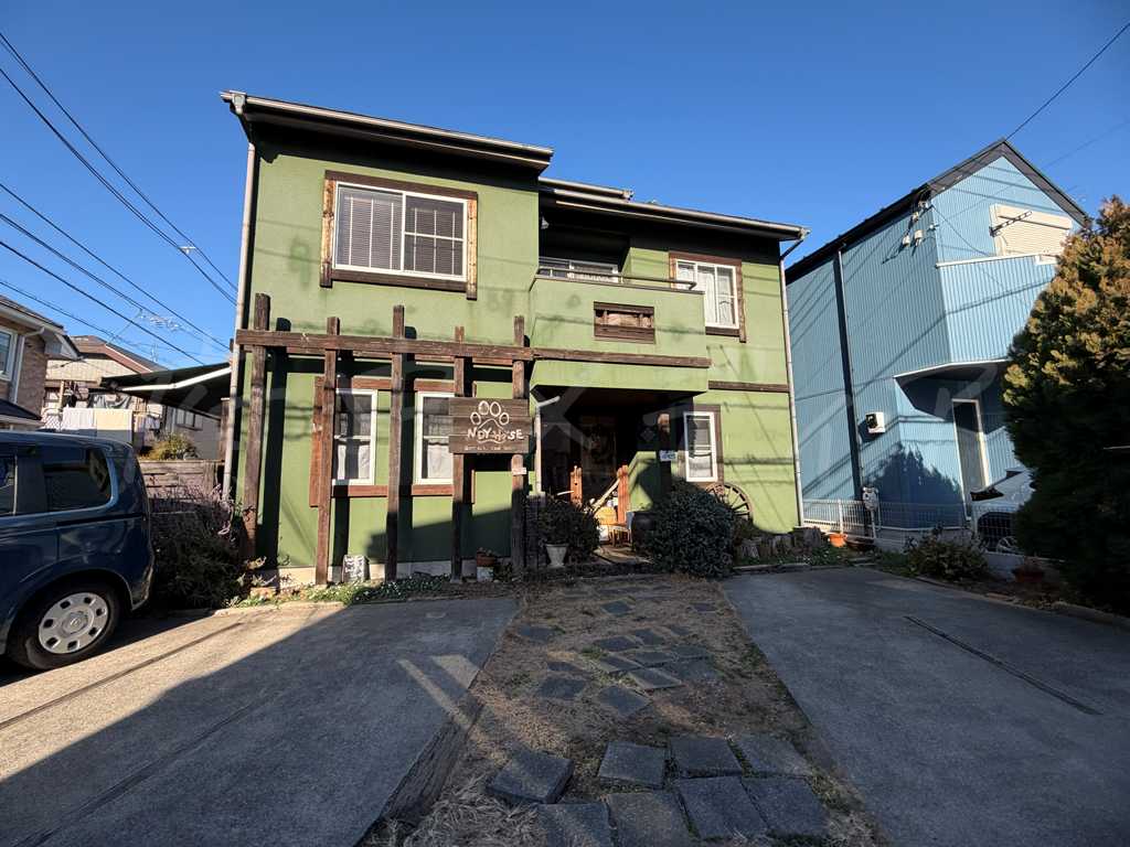 外観|住宅街にある緑色の大きな一軒家