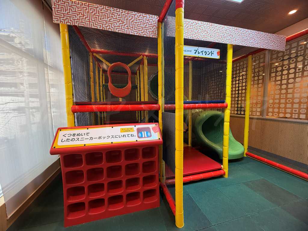 プレイプレイスは2階のガラス扉で仕切られた専用エリア。エレベーター完備でベビーカーでも安心です。